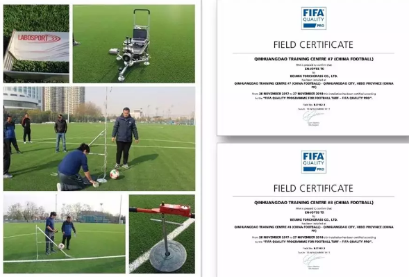 2017年11月28日,由北京火炬人造草坪有限公司和北京華體體育場館施工有限責(zé)任公司合作完成的國家體育總局秦皇島訓(xùn)練基地7號、8號足球場順利通過FIFA QUALITY PRO(國際足聯(lián))場地認(rèn)證并獲得證書!同期的5號、6號人造草坪足球場升級改造工程也順利竣工。