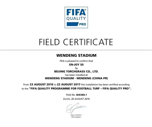 北京火炬一直致力于打造品質(zhì)卓越的人造草坪品牌,勵志為更多的足球運動愛好者,提供真正運動性能良好的人造草坪足球場地。截止到目前為止,北京火炬已鋪設(shè)多塊FIFA認證場地。