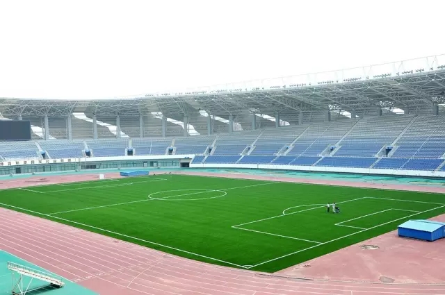 本次文登體育中心足球場地翻新修葺工程,由合作伙伴山東東海塑膠有限公司承接,東海塑膠公司選用來自北京火炬生產(chǎn)的優(yōu)質(zhì)運動系人造草坪產(chǎn)品,加以嚴謹?shù)氖┕すに?,并嚴格按照國際足聯(lián)(FIFA)場地系統(tǒng)標準施工鋪設(shè)完成。