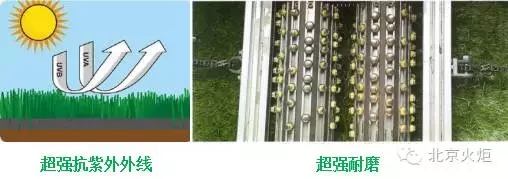 北京火炬采用荷蘭進口賽爾隆草絲,草絲加入特殊抗UV成分,抗紫外線、老化、褪色、斷裂。